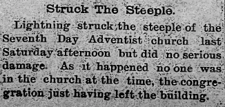 HF #4 • In 1899, lightning struck the steeple of the original church. Not to worry, no one was hurt, but it did make the news in several papers. Here is the article from the Georgia Cracker in the September 2, 1899 edition.