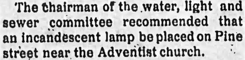 HF #13 • W.A. McCutchen lived next door to the church on Pine Street in the house that faced Mill Street (now Gordon Avenue). The house, since rebuilt in the 1940s, is still standing at that location. This is where both McCutchen and E.C. Keck were later arrested in November 1893.